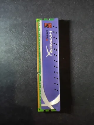 Módulo de memoria RAM HyperX. - Diseño en color púrpura con detalles plateados. - Ranura de conexión dorada.