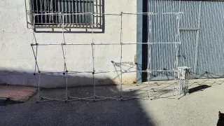 Estructura metálica (aluminio) plegable para montar fondos fotográficos, croma o de eventos photocall etc. Es ligera y fácil de transportar. En la segunda foto el detalle de su precio en tienda. Por el grande pido 140€ por el pequeño 110 € por los dos juntos 220€