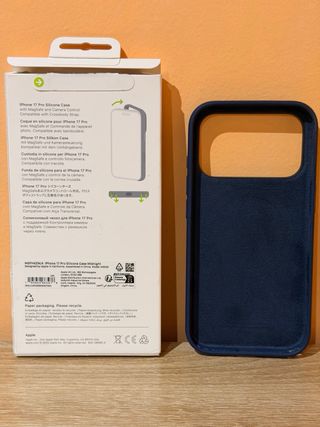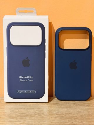 Funda de silicona original de Apple para iPhone 17 Pro. - Color azul. - Compatible con MagSafe. - Diseño con control de cámara.