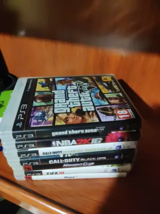 Pack de videojuegos para PlayStation 3 con manuales. Están en buen estado, aunque se me fastidió la PS3 hace tiempo y no puedo probarlos. - Grand Theft Auto V - NBA 2K16 - Call of Duty: Modern Warfare 3 - Call of Duty: Black Ops - Midnight Club Los Angeles - FIFA 10 - Haze