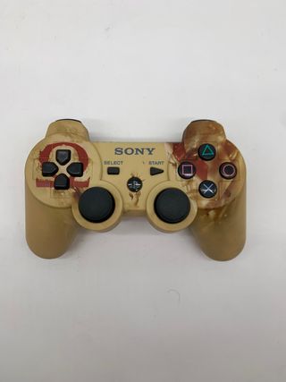 Se vende mando Sony DualShock 3 para PlayStation 3, con diseño inspirado en God of War. Carcasa en color beige envejecido con detalles decorativos estilo Kratos. Estado: • Funciona correctamente • Presenta señales visibles de uso pero en muy buen estado • Joysticks en buen estado 📦 Se vende únicamente el mando 🎮 Compatible con PlayStation 3