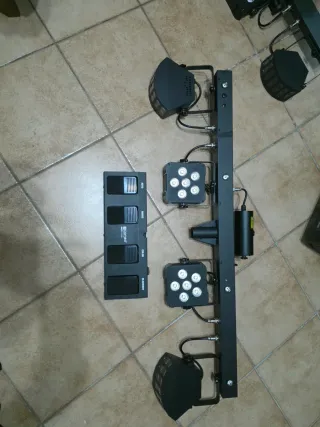 Sistema de iluminación Cameo Multi FX Bar 5 con varios efectos. - Barra de efectos de iluminación. - Incluye diferentes tipos de luces y efectos. - Se incluye funda de transporte y protección, algo deteriorada, pero funcional. - Control dmx, sonido, automatico