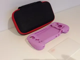 Protege tu consola Anbernic RG556 con esta funda y protector de pantalla. - Funda de silicona en color lila. - Protector de pantalla de cristal.