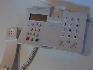Teléfono fijo de sobremesa con un diseño clásico. - Teclado numérico completo. - Pantalla LCD. - Botones de función adicionales.
