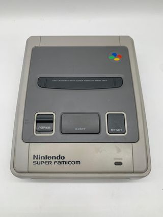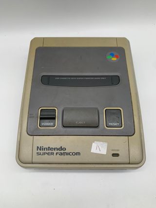 En venta Nintendo Super Famicom original, versión japonesa (NTSC-J) de la mítica Super Nintendo. • Estado: Usada, en buen estado estético (ver fotos para más detalle). • Funcionamiento: Probada y funcionando correctamente. • Incluye: Consola únicamente (sin cables ni mandos). También disponible en pack con mando original por 70 €. Cualquier duda, pregúntame sin compromiso.