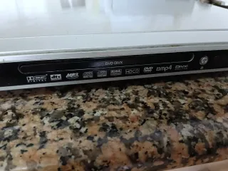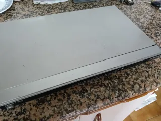 Reproductor de DVD plateado de la marca Packard Bell. No sabemos si funciona, lo vendemos para piezas y si funciona, pues suerte para el que se lo lleve!! A nosotros ya no nos hace falta.