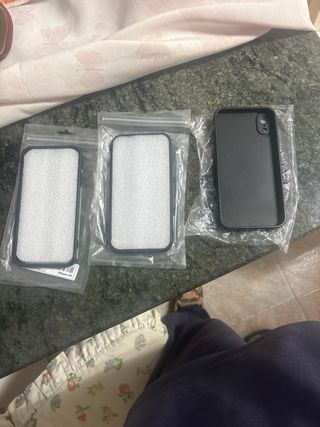 Conjunto de tres fundas a estrenar para Xiaomi 15T Pro. Cada una por separado: 5€, las 3: 13€ De izquierda a derecha: - Funda negra con bordes cromados color oro y exterior en tela fina - Funda negra con textura de fibra de carbono y línea roja. - Funda verde militar con interior en tela fina.