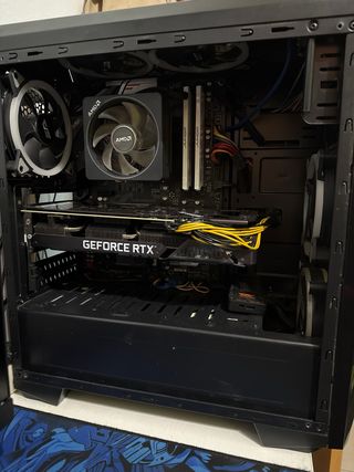 Ordenador usado para gaming. Precio negociable🚨 - Gráfica: GeForce RTX 3070 8GB 240€ - Procesador: Ryzer5 5500. 75€ - Refrigeración: AMD(disipador aire) 15€ - Placa base: B450 AORUS PRO-CF. 60€ - Ram: JUHOR. CL18-22-22-42. 150€ (2x16Gb 3200 Mhz) - Caja: Mars Gaming(5 ventiladores) 20€ - Fuente de alimentación: 30€ Corsair 550W (Bronce) - Disco duro 512GB