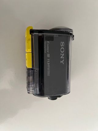 Cámara deportiva Sony HDR-AS30V original en muy buen estado. Calidad de imagen superior gracias a su sensor Sony Exmor R de 11.9 MP y lente Carl Zeiss Vario-Tessar con ángulo de 170°. • Tecnología: Estabilizador de imagen SteadyShot para vídeos fluidos sin vibraciones. • Conectividad: Incluye WiFi y NFC para conectar al móvil y GPS integrado para registrar velocidad y ruta. • Accesorios: Se incluye la carcasa oficial Sony (SPK-AS2) resistente al agua, polvo y caídas. • Vídeo: Graba en Full HD 1080p y tiene modo de cámara lenta (Slow Motion).
