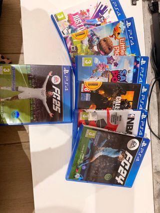 Se vende consola PlayStation 4 con siete videojuegos. - FIFA 25 - FIFA 24 - Little Big Planet - Just Dance - Sackboy: A Big Adventure - Call of Duty: Black Ops III - NBA 2K18