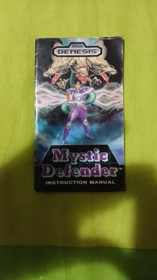 Manual de instrucciones para el videojuego Mystic Defender de Sega Genesis. - Cubierta con arte del juego. - Incluye instrucciones de juego.