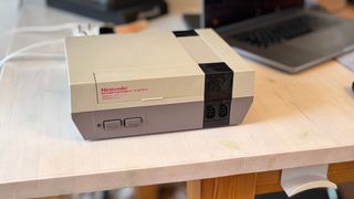 Nintendo Entertainment System en buen estado. Incluye la consola y dos mandos. Dos mandos incluidos, adaptador de corriente y cable TV. Funciona perfectamente.