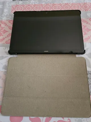 Tablet Huawei en color negro, con una funda protectora azul. - Pantalla de gran tamaño. - Diseño elegante y moderno. - Sin ningun tipo de desperfecto, pantalla siempre protegida con un protector de pantalla. - Regalo funda protectora rigida.