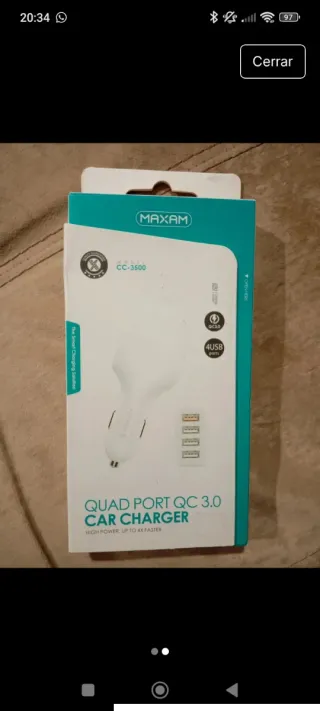 Cargador para coche de alto rendimiento marca MAXAM, totalmente NUEVO. Es la solución ideal para viajes largos, ya que permite cargar hasta 4 dispositivos simultáneamente. Lo más destacado: 4 Salidas de carga: Dispone de múltiples puertos para que nadie se quede sin batería (móviles, tablets, GPS, etc.). Tecnología de Carga Inteligente: Identifica cada dispositivo para entregar la potencia exacta y cargarlo de forma eficiente. Carga Rápida (Quick Charge): Mucho más veloz que los cargadores estándar de mechero. Seguridad Avanzada: Protege contra sobrecalentamiento y subidas de tensión para no dañar la batería del coche ni móvil