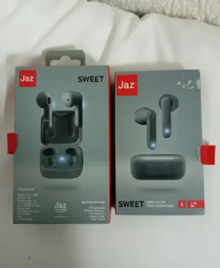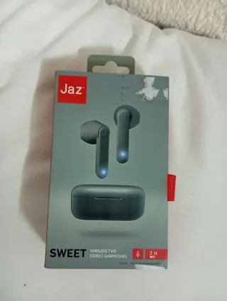 Vendo auriculares inalámbricos Jaz modelo Sweet, totalmente nuevos y en su caja original. Son ideales para el día a día, hacer deporte o llevar en el bolso por su tamaño compacto. Tecnología TWS: Totalmente inalámbricos, sin cables de por medio. Autopairing: Se emparejan automáticamente al sacarlos de la funda. Controles táctiles: Gestiona tu música y llamadas con un toque. Autonomía: Hasta 3 horas de uso continuo. Caja de carga: Estuche de 300 mAh para recargarlos en cualquier lugar. Micrófono integrado: Perfecto para llamadas en manos libres. 📦 Contenido de la caja: Pareja de auriculares inalámbricos. Estuche de carga.