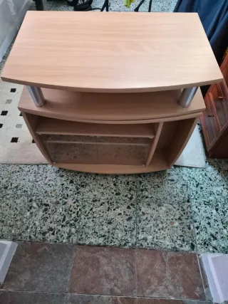 Mesa de televisión con un diseño moderno y funcional. Alto 77 ancho 79 fondo 50 cm - Estructura principal de madera. - - Diseño curvo y elegante.