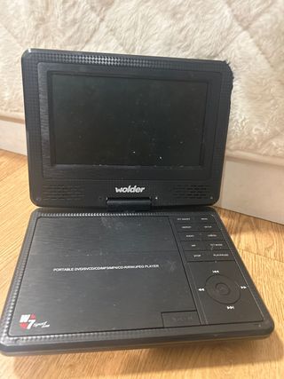 Reproductor de DVD portátil Wolder. - Pantalla TFT. - Compatible con formatos DVD, SVCD, CD, MP3, MP4, CD-R/RW y JPEG. -Contiene todas las piezas extra. Envios en menos de 48 horas