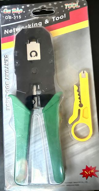 Herramienta para redes y crimpado de cables. - Modelo OB-315. - Incluye herramienta de corte. - Diseño ergonómico con mangos verdes.
