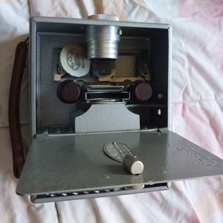 Proyector de diapositivas antiguo llamado Zett-Projektor, modelo 250, fabricado por Erich Zillmer en Braunschweig-Querum. Los proyectores de diapositivas eran dispositivos utilizados para mostrar imágenes fijas, como fotografías, en una pantalla grande para que las vieran varias personas a la vez. Este tipo de proyector, como el Voigtländer Zett 150 (modelo similar), se fabricaba en la década de 1950 y era conocido por ser uno de los más pequeños de su época original incluye alguna diapositiva