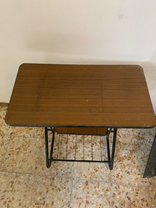 Mesa auxiliar con superficie de madera y estructura metálica. - Diseño vintage. - Ruedas para fácil movilidad. - Estante inferior. - Ideal como mesa de televisión.