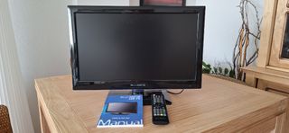 Televisor led 20 pulgadas TDT Systems K20LM5H. Para canales analógicos y digitales, HD. Entradas antena, HDMI, USB, VGA (utilizable como monitor PC) y SCART. Salida auriculares y audio digital. Con soporte de mesa extraíble para instalar en soporte de pared. En perfecto estado de funcionamiento, tanto TV como mando a distancia. Pantalla perfecta, sin píxeles muertos. Muy pocas horas de uso, prácticamente nuevo (caravana)