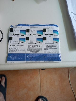Antena HDTV interior para mejorar la recepción de señal digital. - Fácil instalación y conexión directa a la televisión. - Incluye amplificador y conversor. - Diseño compacto y ligero. - Perfecta para espacios reducidos.