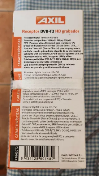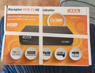 Receptor Televisión Digital Terrestre (TDT) de la marca Axil,modelo RT0420T2. Soporta el estándar DVB-T2 para recepción de canales en Alta Definición (HD). Incluye función PVR para grabar programas en dispositivos USB y Timeshift para pausar la emisión en directo. Cuenta con conexión Euroconector para televisores compatibles. Receptor DVB-T2 HD grabador Alta Definición La TDT del futuro Pausa-Directo USB 2.0 Grabador