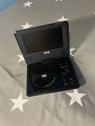 Reproductor DVD TDT Portátil de la marca NPG, sin estrenar, con todos sus componentes y en perfecto estado. Perfecto para ponerle películas a los niños en el coche o para hacerle un regalo a algún chiquillo. Se vende porque nunca se utilizó. Tiene pantalla giratoria 270º. Permite conexiones USB, SD MMC MS y AV OUT Incluye funda de transporte, cargador (con toma a enchufe tradicional y adaptador para encendedor de coche), auriculares, antena y mando a distancia. Se entrega en su caja y embalajes originales.