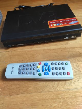 IMPORTANTE: Este aparato no sintoniza canales en HD por lo que en España a partir de febrero perderá su utilidad como TDT y solo se podrá usar como reproductor multimedia o como radio a través de TDT. Sintonizador TDT con grabador por USB. Marca: Lauson, modelo 1025N. Estado: practicante nuevo, se usó menos de 15 días y luego se cambió de TV. Con caja original y mando (no se envían pilas). Salidas: euroconector (scart) y RCAs video compuesto. Se envía de regalo cable de RCAs (amarillo, rojo, blanco) a euroconector para comentar a la TV ( este cable no venía con el aparato).