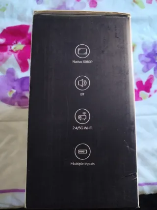 Proyector 1080p, wifi y bluetooth. 4k compatible Aplicaciones preinstaladas. Corrección de nitidez y tamaño. Mando a distancia. A estrenar. Precio en Amazon 69€