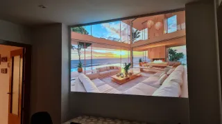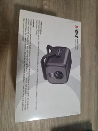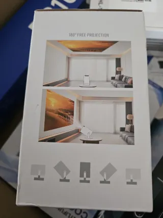 Solo abierto para las fotos! 1200 ansi lumen Corrección trapezoidal, enfoque, evita obstáculos...todo automático. Increíble calidad de imagen y brillo, para poder verlo incluso con luz, aunque se disfruta como una pantalla de tv en oscuridad. Es un verdadero cine. En las imágenes, con zoom reducido, está dando 100" a 4 metros y desde una esquina, ni siquiera está centrado y la calidad de imagen es brutal. Lo mejor es que es wifi y tiene las apps necesarias, no necesitas más que un enchufe cercano y a disfrutar. También se conecta fácilmente a tus altavoces Bluetooth. - Modelo P62PRO. Totalmente nuevo!