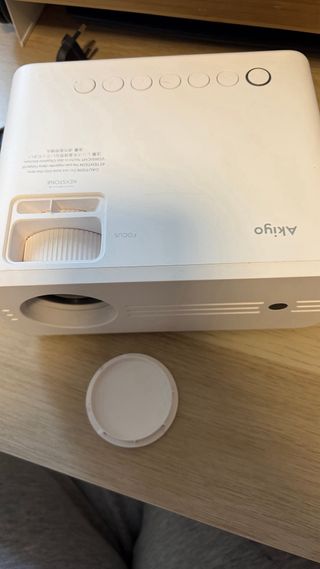 Proyector Kiano Chill en color blanco. Disfruta de tus contenidos favoritos con este dispositivo. Está sin estrenar, sin sacar de la caja; compré dos, necesitaba sólo uno y por un malentendido no he podido devolverlo. Su precio de venta es de 190€. - Conectividad Bluetooth. - Conexión WiFi. - Diseño compacto.