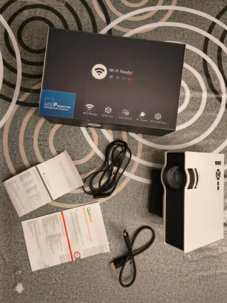 Proyector LED Quarite con conexión Wi-Fi. Incluye la caja original, envoltorio interno, cable de alimentación, cable HDMI y folletos informativos. Usado muy pocas veces. 🛜 Wi-Fi Ready ↔️ Tamaño compacto 💻 Resolución 16:9 WVGA 🪄 Interfaces variadas