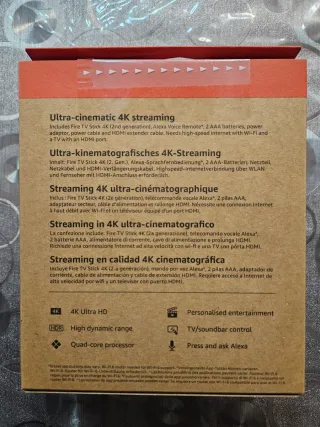 Disfruta de tus contenidos favoritos con este Fire TV Stick 4K. - Resolución 4K. - Conectividad Wi-Fi 6. - Capacidad de 8 GB. Precintado nuevo a estrenar
