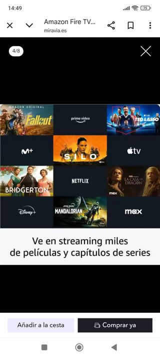 Vendo Fire TV Stick 4K prácticamente nuevo. Solo se ha usado un día, todo funciona perfectamente y está como recién comprado. Dispone de 2GB de RAM, 8GB de almacenamiento y WiFi 5, ofreciendo un rendimiento fluido y conexión rápida. Ideal para ver Netflix, YouTube, Prime Video, Disney+, etc. Incluye mando original y todos los accesorios. Lo vendo porque he comprado una Smart TV y ya no lo necesito.