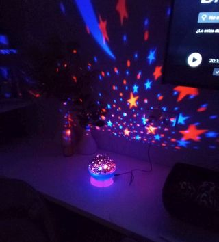 Proyector de luces con diseño de estrellas y nebulosa. Incluye control remoto para ajustar las funciones. - Diseño moderno y redondo. - Múltiples efectos de luz Nebulosa y estrellas estáticas o en movimiento. - Mando a distancia y cable (sin cabezon solo el cable). Sin el cable no funciona, tiene que estar enchufado a la corriente.