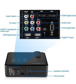 Excelvan EHD11 Technology Type TFT-Sintel chanel+LED Techn glob lens F=170(Manual focusing) Resolution Native:800x480 support:720p 1080p Multimedia interface VGA, USB, HDMI, AV, TV YPBPR Speaker 2Wx2 Lamp LED lamp; 20000 hours Projection Method Front, Rear Celling Mount, Table top Lmage Zoom Elecroniv horizontal and vertical flip;image zoom Keystone Correction Manual keystone correction Aspect Ratio 16:9 Native, 4:3 compatitabke; switch freely Power Supply 110V-240 V (±10%), 50/60 Hz