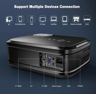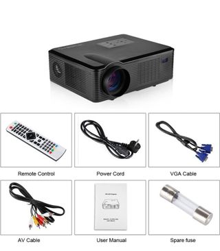 Proyector de la marca Excelvan en color negro. - Diseño elegante y compacto. - Panel de control intuitivo. - Asa superior para transporte. - Se regala maleta de transporte. - cables de video y vga incluidos.
