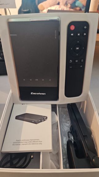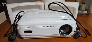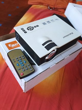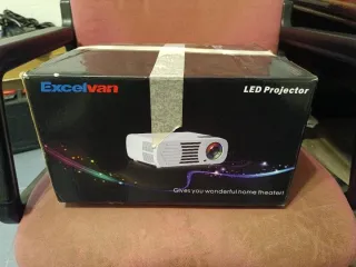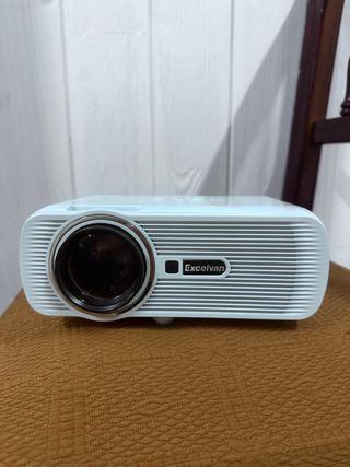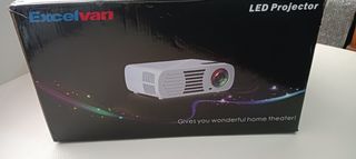 Proyector LED Excelvan en perfecto estado. Es compacto y ligero, ideal para llevarlo a cualquier parte. - Conexión HDMI, USB y AV. - Incluye cable de alimentación (comprobar si es el adecuado para tu región). - Dispone de ranura para tarjeta SD.