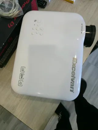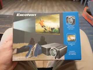Proyector excelvan con muy poco uso con tdt integrado y muchos puertos para conectar ordenador o tros dispositivospara ver peliculas o presentaciones, muy buena calidad de imagen,