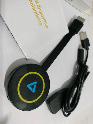 Dispositivo de mirroring inalámbrico AVD. - Incluye cable USB y manual de usuario. - Diseño compacto y portátil.