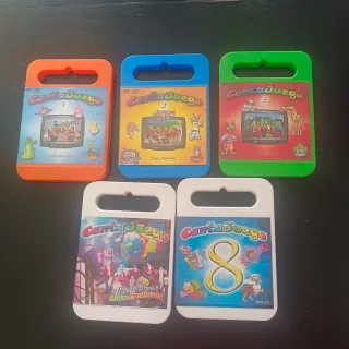 Lote de 5 DVDs de CantaJuego, incluyendo los números 1, 2, 3, y dos más. - DVD 1: Juegos Musicales - DVD 2: Juegos Musicales - DVD 3: Juegos Musicales - DVD con temática de Fiesta en la Aldea Encantada - DVD con el número 8 y temática musical Y otros lotes infantiles y no infantiles . Cada lote 15 euros