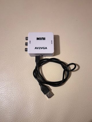 Conversor Mini AV2VGA para conectar dispositivos con salida AV/RCA (amarillo vídeo + rojo/blanco audio) a un monitor/TV con entrada VGA. Incluye salida VGA, salida de audio jack 3,5 mm y alimentación por micro-USB (cable incluido). Selector 720p/1080p. Ideal para consolas retro, decodificadores, DVD o cámaras antiguas. Vea más artículos en mi perfil por si le interesa un lote a buen precio. Entrega en Alcalá de Henares y Envíos mediante Wallapop (InPost preferido)