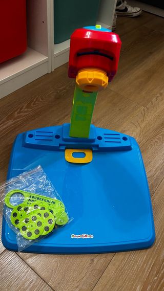 Divertido proyector para que los más pequeños dibujen. - Incluye varios discos con dibujos. - Base azul con detalles en rojo y verde.