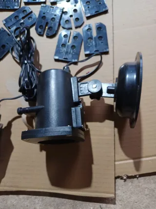 Proyector para eventos en color negro. Ideal para crear ambiente en celebraciones. Con 12 diapositivas intercambiables Carnaval, cumpleaños, navidad Halloween y varios dibujos más - Diseño compacto y portátil. - Soporte ajustable para diferentes ángulos. - Cable de alimentación incluido. Tan solo se ha sacado para hacer fotos y probarlo