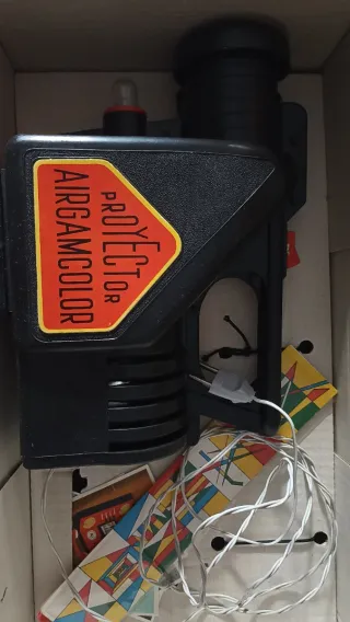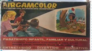 Ignoro si funciona. Juguetes años 60. Proyector Airgamcolor con caleidoscopio incorporado. Ideal para proyectar ilustraciones a todo color. - Proyecta cualquier ilustración a todo color. - Permite proyectar revistas, dibujos, fotografías, sellos, mapas, libros, etc. - Entretenido, divertido y educativo.