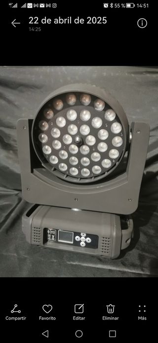 Foco móvil de luz wash de distintos colores y efectos. Varía los colores al ritmo de la música.