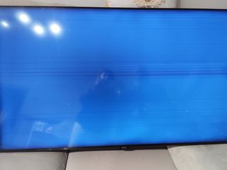 Televisión Samsung de 50 pulgadas con pantalla Smart TV. Funciona, pero hace una pequeña raya en medio que no molesta para visualizarla y cuando lleva más de 7 horas aproximadamente encendida se apaga y hay que esperar unas horas para que vuelva a encender. Se vende sin base de pie, siempre ha estado colgada.
