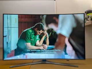 Televisor Samsung smart Tv. con pantalla curva de 55 pulgadas. Vendo esta TV por qué me mudo y es demasiado grande, tiene una raya negra en la parte superior izquierda (adjunto foto donde se ve detallada) pero no es muy grande comparada con el tamaño de la T y no molesta. A parte de eso tiene otros detalles que también hay fotos de ellos, pero aun sirve a la perfección, todas las entradas HDMI funcionan y el sonido es excelente, además la curvatura de la pantalla crea un efecto envolvente. Tienes su mando original. Nota: pesa bastante la tv. No envíos.