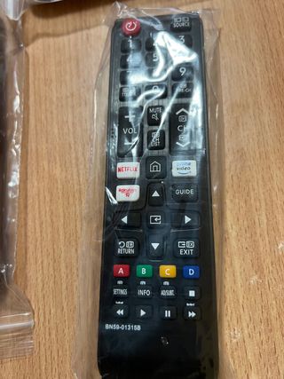 Mando a distancia universal para televisores Samsung. Válido para todos los modelos de TV Samsung smart tv. NO PRECISA CONFIGURACIÓN. - Botones de acceso directo a Netflix, Rakuten TV, Prime Video y Samsung TV Plus. - Diseño ergonómico y moderno. - Color negro